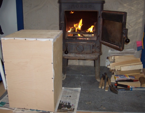Nu har jag tätat den på alla möjliga ställen. Någon tipsade om ett enklare sätt att bygga en egen cajon. Hitta en gammal
